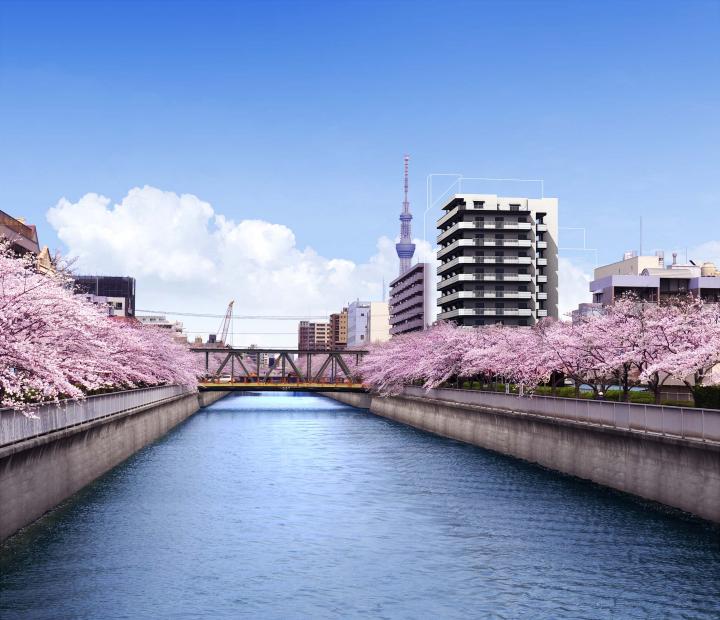 ☆都立「木場公園」徒歩2分!前面建物隣棟間隔は河川と桜並木を挟んで50m!